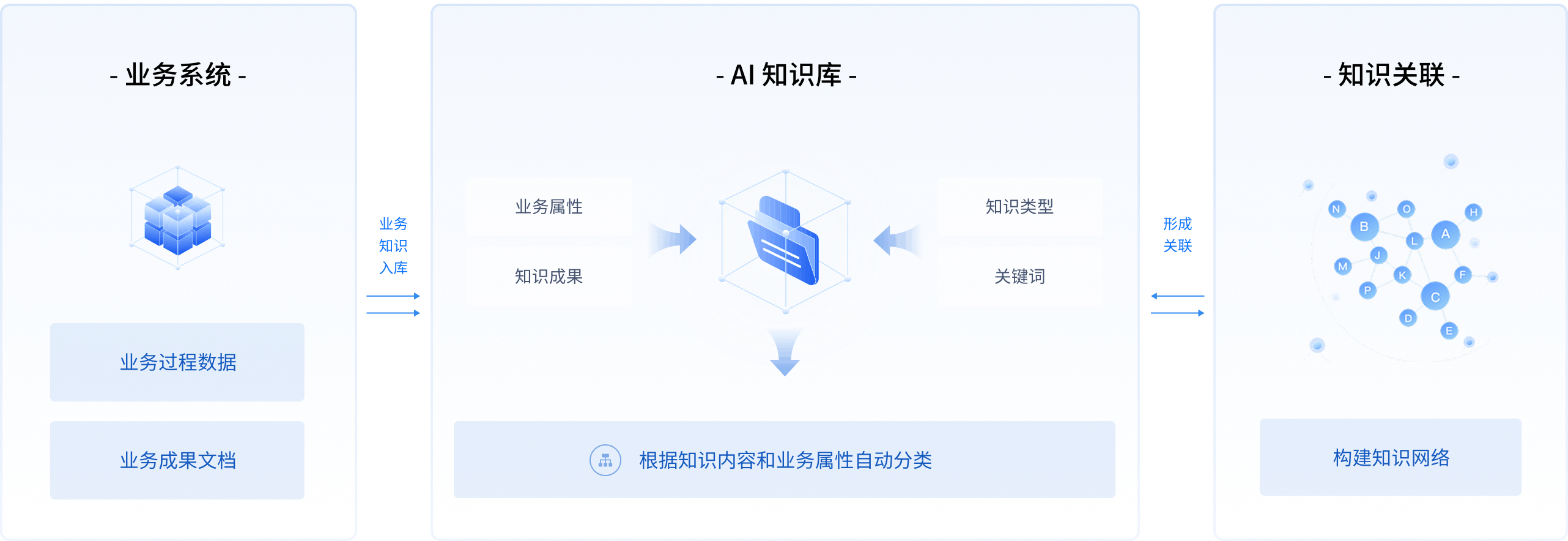 基于平台化和自定义智能体能力,将知识深度嵌入到业务流程以及应用中,实现知识业务协同关联