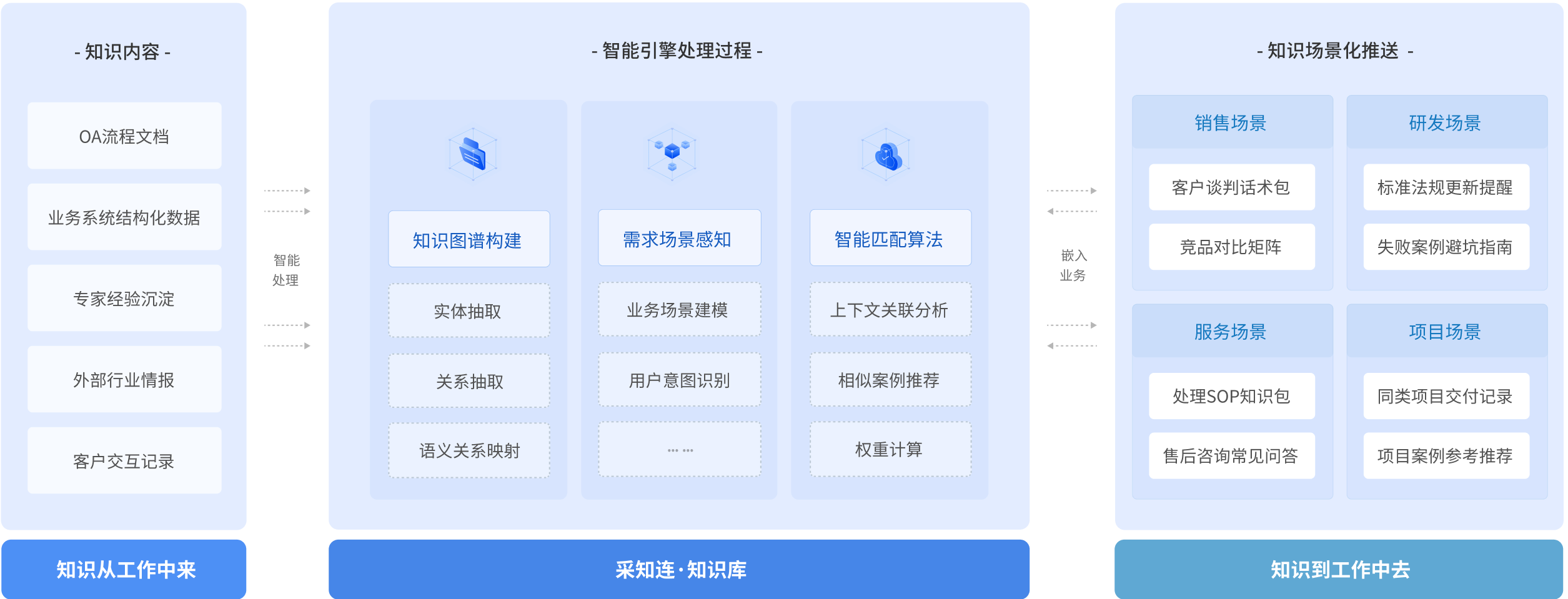 采知连通过多源知识自动采集、智能搜索与问答、知识业务深度融合、知识安全保障,让知识来源于业务、服务于业务